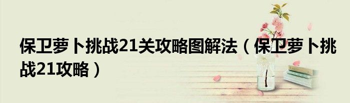 大家好,雨雨来为大家解答以上问题,保卫萝卜挑战21关攻略图解法,保卫萝卜挑战21攻略很多人还不知道,现在让我们一起来看看吧!