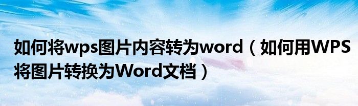 如何将wps图片内容转为word(如何用WPS将图片转换为Word文档)