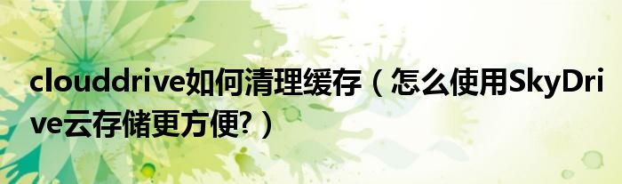 clouddrive如何清理缓存(怎么使用SkyDrive云存储更方便?)