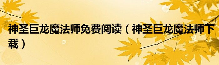大家好,雨雨来为大家解答以上问题,神圣巨龙魔法师免费阅读,神圣巨龙魔法师下载很多人还不知道,现在让我们一起来看看吧!
