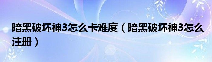大家好,雨雨来为大家解答以上问题,暗黑破坏神3怎么卡难度,暗黑破坏神3怎么注册很多人还不知道,现在让我们一起来看看吧!