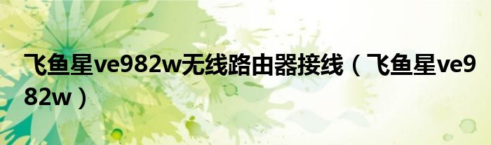 大家好,雨雨来为大家解答以上问题,飞鱼星ve982w无线路由器接线,飞鱼星ve982w很多人还不知道,现在让我们一起来看看吧!