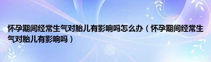 1、怀孕期间经常生气对胎儿有影响,对孕妇本人也不好。