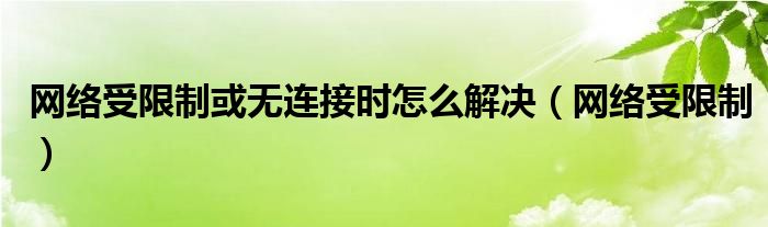 大家好,雨雨来为大家解答以上问题,网络受限制或无连接时怎么解决,网络受限制很多人还不知道,现在让我们一起来看看吧!