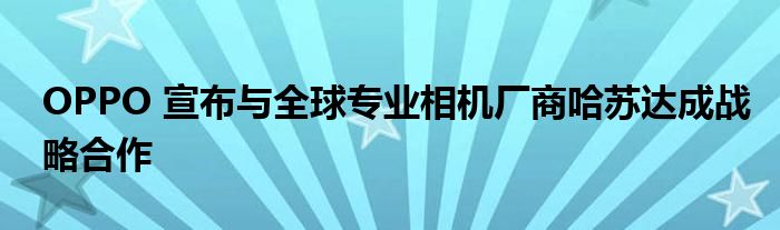 2月15日消息,OPPO 宣布与全球专业相机厂商 —— 哈苏达成战略合作。OPPO 将通过计算色彩、计算光学两大技术创新,与哈苏聚焦色彩的联合研发,创造手机相机的全新体验。