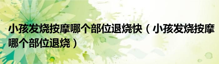 大家好,linda来为大家解答以上的问题。小孩发烧按摩哪个部位退烧快,小孩发烧按摩哪个部位退烧很多人还不知道,现在让我们一起来看看吧!