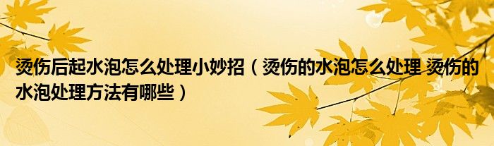 大家好,linda来为大家解答以上的问题。烫伤后起水泡怎么处理小妙招,烫伤的水泡怎么处理 烫伤的水泡处理方法有哪些很多人还不知道,现在让我们一起来看看吧!