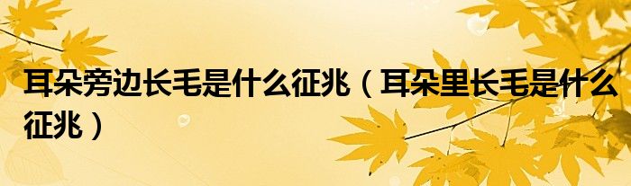 大家好,linda来为大家解答以上的问题。耳朵旁边长毛是什么征兆,耳朵里长毛是什么征兆很多人还不知道,现在让我们一起来看看吧!