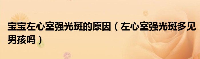 大家好,linda来为大家解答以上的问题。宝宝左心室强光斑的原因,左心室强光斑多见男孩吗很多人还不知道,现在让我们一起来看看吧!