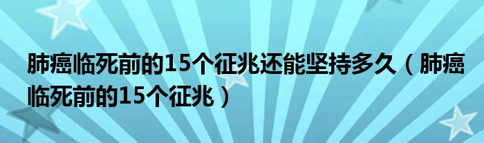 大家好,linda来为大家解答以上的问题。肺癌临死前的15个征兆还能坚持多久,肺癌临死前的15个征兆很多人还不知道,现在让我们一起来看看吧!