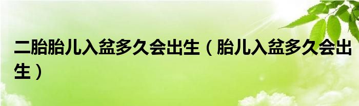 二胎胎儿入盆多久会出生(胎儿入盆多久会出生)