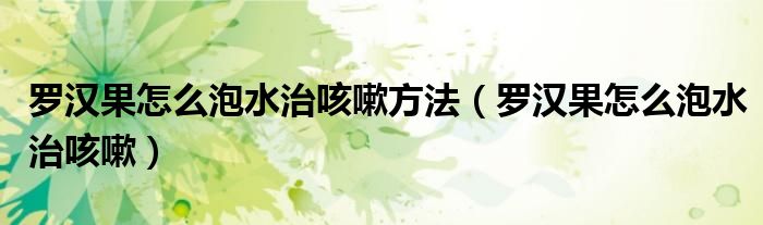 罗汉果怎么泡水治咳嗽方法(罗汉果怎么泡水治咳嗽)