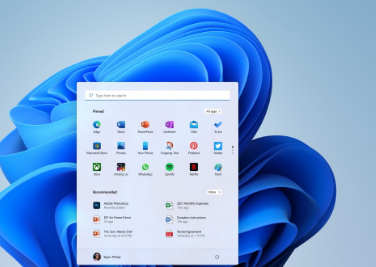 这个设计的最前面和最中心是新的开始菜单,它位于中间,带有完全重新设计的用户界面。新菜单在顶部有搜索栏,还有固定的应用程序,然后是下面的一大堆推荐项目。您仍然可以从这里更改您的用户配置文件并关闭您的 PC。