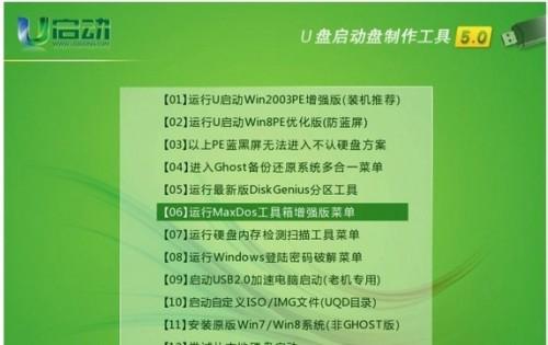 3、通过上下方向将选择“MAXDOS工具箱”,按回车键“Enter”进入MaxDos工具箱,如下图所示:
