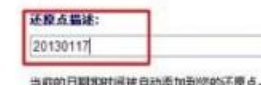 3、 为还原点命名,按照用户的方法来取名,如图“20130117”完成后按“创建”。