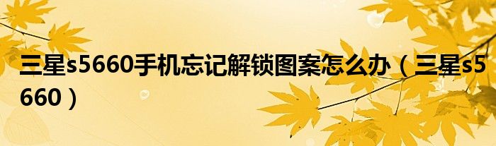 大家好,来宝来为大家解答以下问题,三星s5660手机忘记解锁图案怎么办,三星s5660很多人还不知道,今天让我们一起来看看吧!