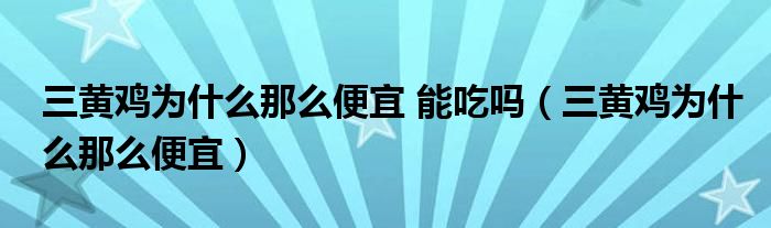 大家好,小晋来为大家解答以下问题,关于三黄鸡为什么那么便宜 能吃吗,三黄鸡为什么那么便宜很多人还不知道,今天让我们一起来看看吧!