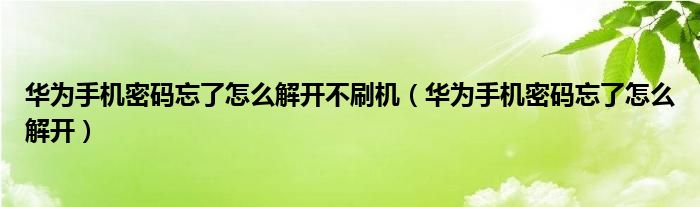 大家好,小晋来为大家解答以下问题,关于华为手机密码忘了怎么解开不刷机,华为手机密码忘了怎么解开很多人还不知道,今天让我们一起来看看吧!