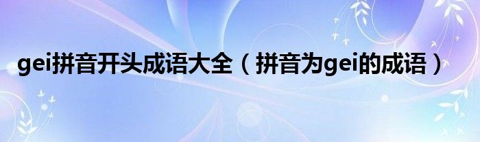 大家好,小晋来为大家解答以下问题,关于gei拼音开头成语大全,拼音为gei的成语很多人还不知道,今天让我们一起来看看吧!