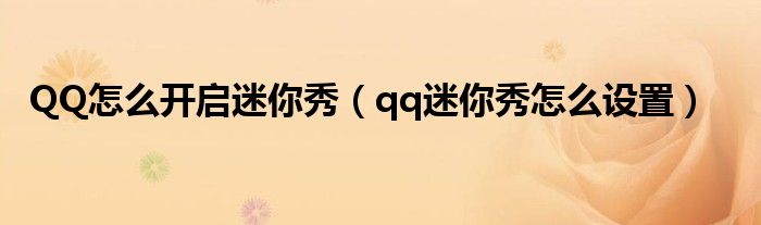 大家好,小晋来为大家解答以下问题,关于QQ怎么开启迷你秀,qq迷你秀怎么设置很多人还不知道,今天让我们一起来看看吧!