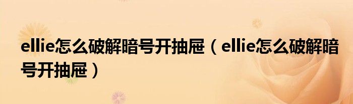 大家好,小晋来为大家解答以下问题,关于ellie怎么破解暗号开抽屉,ellie怎么破解暗号开抽屉很多人还不知道,今天让我们一起来看看吧!
