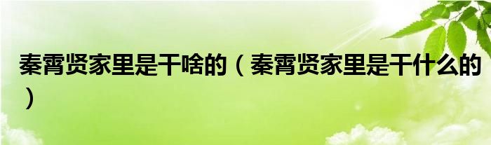 大家好,小晋来为大家解答以下问题,关于秦霄贤家里是干啥的,秦霄贤家里是干什么的很多人还不知道,今天让我们一起来看看吧!