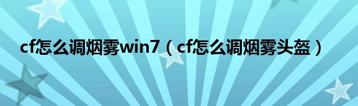 cf怎么调烟雾win7(cf怎么调烟雾头盔)