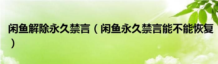 解答:1、闲鱼永久禁捕不能恢复,闲鱼永久禁捕的惩罚不能解除。对闲鱼的一些惩罚是无法改变也无法逆转的,永久禁入就是其中之一。