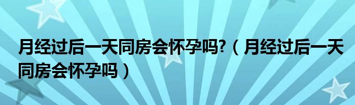 大家好,linda来为大家解答以上的问题。月经过后一天同房会怀孕吗?,月经过后一天同房会怀孕吗很多人还不知道,现在让我们一起来看看吧!