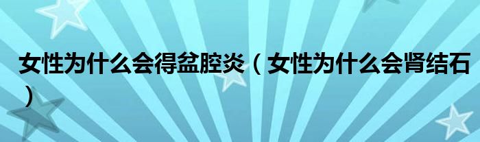 大家好,linda来为大家解答以上的问题。女性为什么会得盆腔炎,女性为什么会肾结石很多人还不知道,现在让我们一起来看看吧!