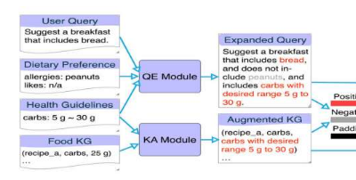 框架的第二个组件,约束模型模块,处理正和负成分约束(例如,必须包含或不能包含花生)。另一方面,最后一个模块执行所谓的知识图扩充。