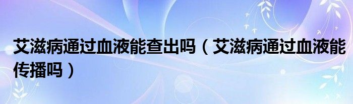 大家好,linda来为大家解答以上的问题。艾滋病通过血液能查出吗,艾滋病通过血液能传播吗很多人还不知道,现在让我们一起来看看吧!