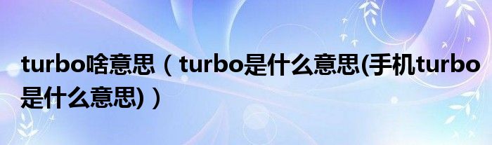 大家好,小常来为大家解答以下问题,对于turbo啥意思,turbo是什么意思(手机turbo是什么意思)很多人还不知道,今天让我们一起来看看吧!