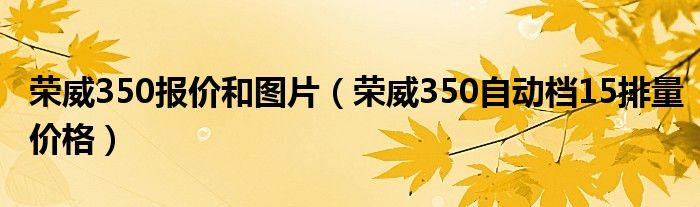 大家好,小常来为大家解答以下问题,对于荣威350报价和图片,荣威350自动档15排量价格很多人还不知道,今天让我们一起来看看吧!