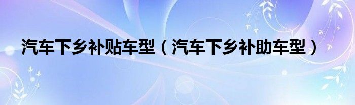 汽车下乡补贴车型(汽车下乡补助车型)