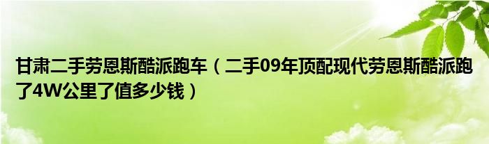 大家好,小常来为大家解答以下问题,对于甘肃二手劳恩斯酷派跑车,二手09年顶配现代劳恩斯酷派跑了4W公里了值多少钱很多人还不知道,今天让我们一起来看看吧!