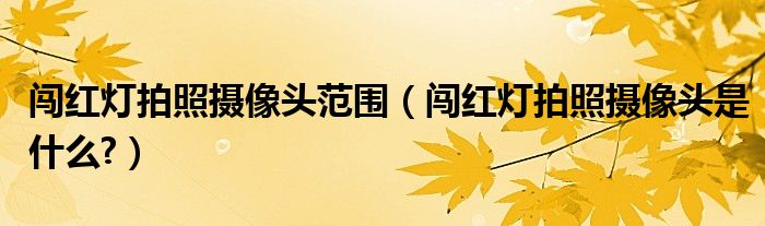 大家好,小美来为大家解答以上问题。闯红灯拍照摄像头范围,闯红灯拍照摄像头是什么?很多人还不知道,现在让我们一起来看看吧!