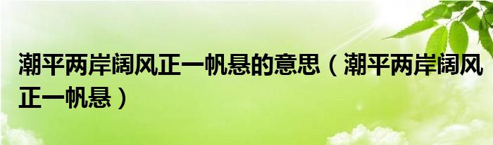 关于潮平两岸阔风正一帆悬的意思,潮平两岸阔风正一帆悬这个很多人还不知道,今天菲菲来为大家解答以上的问题,现在让我们一起来看看吧!
