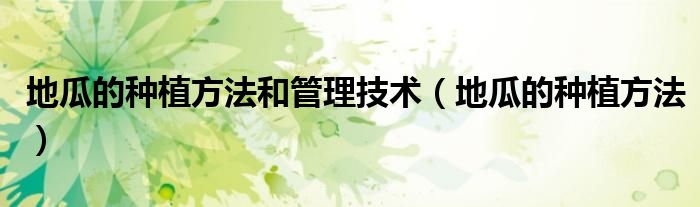 关于地瓜的种植方法和管理技术,地瓜的种植方法这个很多人还不知道,今天菲菲来为大家解答以上的问题,现在让我们一起来看看吧!