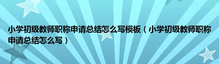 关于小学初级教师职称申请总结怎么写模板,小学初级教师职称申请总结怎么写这个很多人还不知道,今天菲菲来为大家解答以上的问题,现在让我们一起来看看吧!