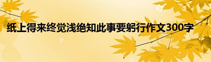 关于纸上得来终觉浅绝知此事要躬行作文300字这个很多人还不知道,今天菲菲来为大家解答以上的问题,现在让我们一起来看看吧!