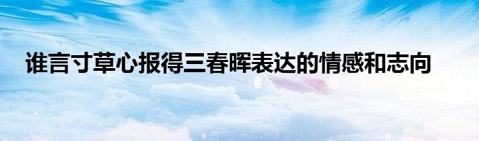 关于谁言寸草心报得三春晖表达的情感和志向这个很多人还不知道,今天菲菲来为大家解答以上的问题,现在让我们一起来看看吧!