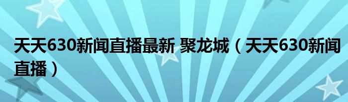 天天630新闻直播最新 聚龙城(天天630新闻直播)