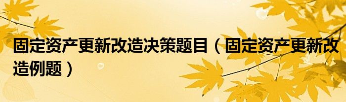固定资产更新改造决策题目(固定资产更新改造例题)
