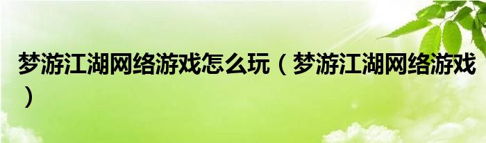 关于梦游江湖网络游戏怎么玩,梦游江湖网络游戏这个很多人还不知道,今天菲菲来为大家解答以上的问题,现在让我们一起来看看吧!