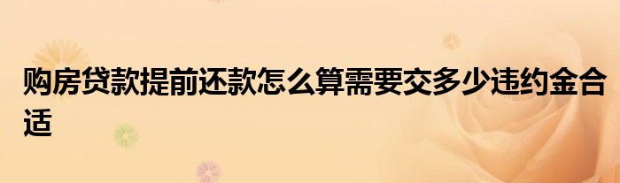 关于购房贷款提前还款怎么算需要交多少违约金合适这个很多人还不知道,今天菲菲来为大家解答以上的问题,现在让我们一起来看看吧!
