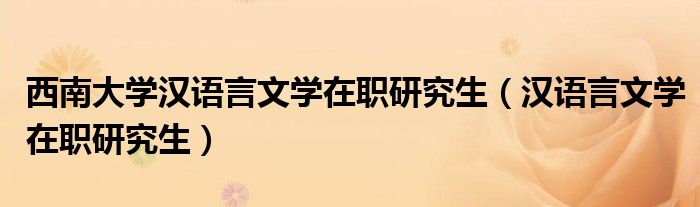 关于西南大学汉语言文学在职研究生,汉语言文学在职研究生这个很多人还不知道,今天菲菲来为大家解答以上的问题,现在让我们一起来看看吧!
