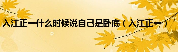 关于入江正一什么时候说自己是卧底,入江正一这个很多人还不知道,今天菲菲来为大家解答以上的问题,现在让我们一起来看看吧!