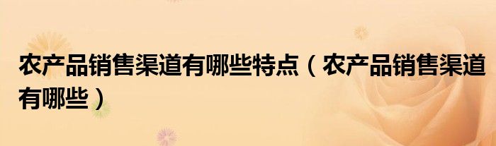 关于农产品销售渠道有哪些特点,农产品销售渠道有哪些这个很多人还不知道,今天菲菲来为大家解答以上的问题,现在让我们一起来看看吧!