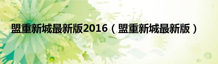 关于盟重新城最新版2016,盟重新城最新版这个很多人还不知道,今天菲菲来为大家解答以上的问题,现在让我们一起来看看吧!